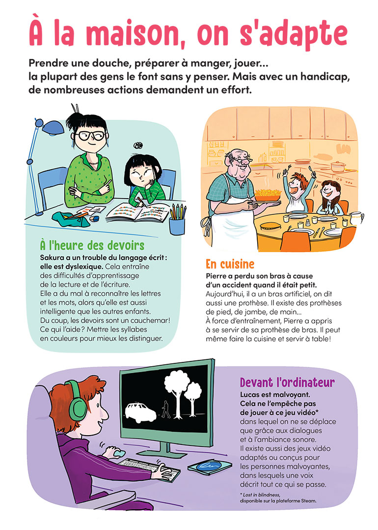 Comment vit-on avec un handicap ? Certains sont nés avec un seul bras. D’autres ont eu un accident ou une maladie, et sont restés paralysés. Certains ont du mal à marcher ou à manipuler, d’autres à parler… Le handicap peut prendre des formes diverses et compliquer la vie quotidienne.
