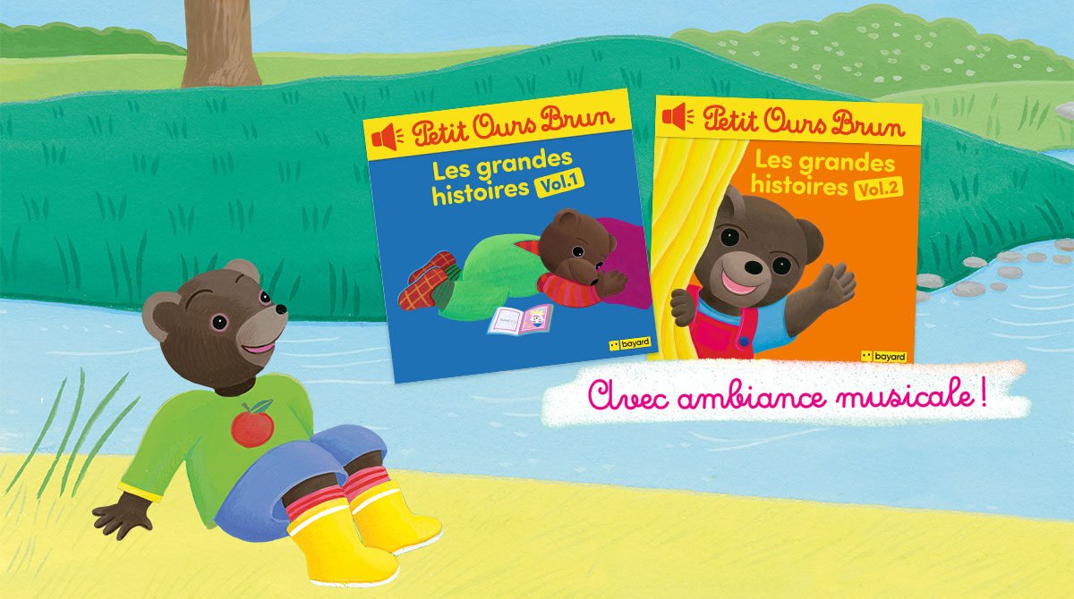 “Les grandes histoires”, vol. 2, de Petit Ours Brun sont disponibles, depuis le 26 avril 2023, sur de nombreuses plateformes : Apple Music, Deezer, Spotify, Audible… et l’appli Bayam.