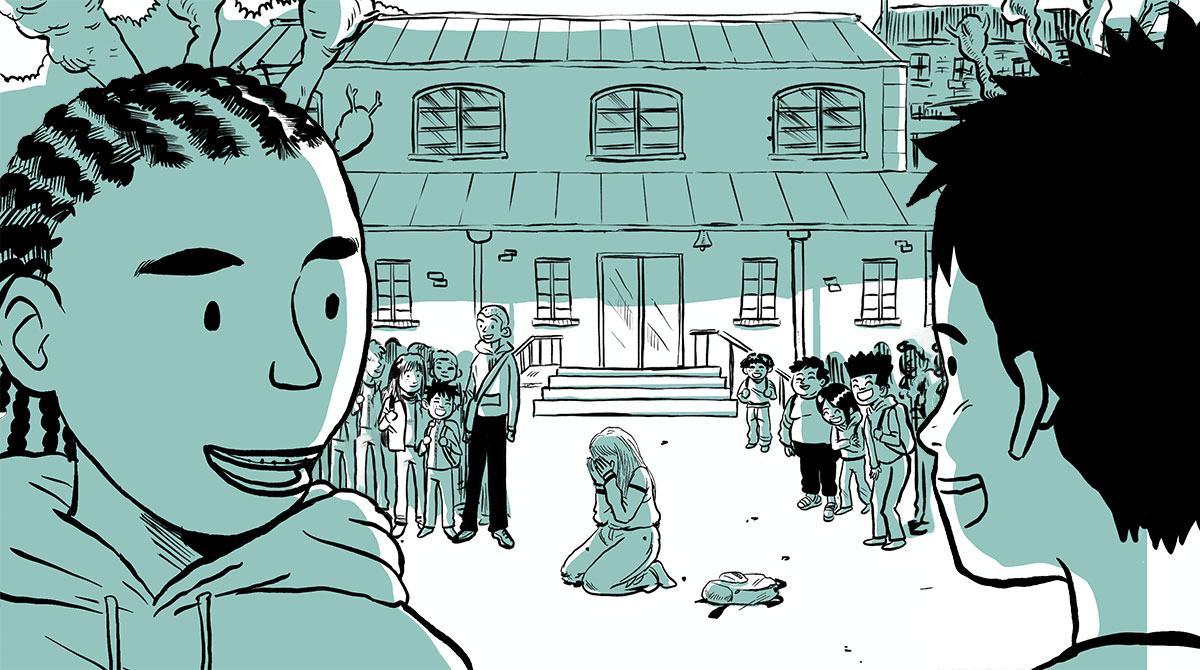 C’est une histoire exemplaire, donc, conçue ainsi pour pouvoir en tirer des leçons. Elle montre que la prise de parole de la victime, mais aussi, surtout, celle d’un tiers, permet de casser la spirale négative et d’agir. Elle insiste aussi sur le fait que les collégiennes et collégiens qui harcèlent sont aussi, on l’oublie trop souvent, des enfants, qui croient « s’amuser » tout en se rendant intéressant(e)s. Elles et eux aussi ont besoin d’un message précis qui leur est destiné : non, agir de la sorte au détriment d’un(e) camarade, quel qu’en soit le motif, ça n’est pas un jeu. Cela peut être très grave, et, à ce titre, c’est puni par la loi.