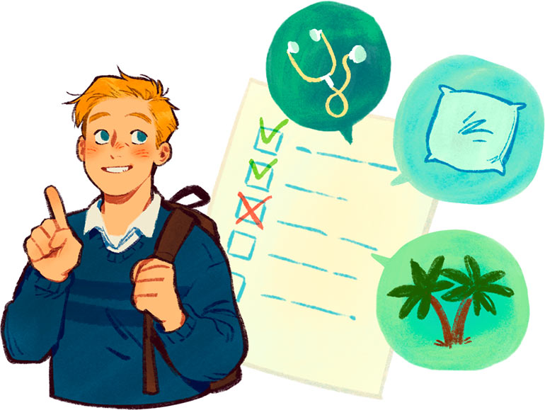 Si prendre de grandes décisions pour ton orientation te semble trop impressionnant, commence par te poser des questions simples. Quels sont tes besoins dans la vie ? S’il te faut 12 heures de sommeil chaque nuit par exemple, tu auras peut-être du mal à être infirmier·e dans un service d’urgence. Si tu détestes la pression et les confrontations, le métier d’avocat ne sera peut-être pas pour toi… Essaie aussi de distinguer tes besoins de tes envies. Est-ce que tu as besoin de voyager pour être épanoui·e ou est-ce simplement une envie que tu pourras assouvir pendant tes vacances ? Tout cela compte !