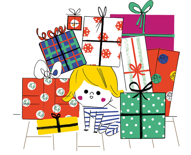 Regarder, il ne fait que ça. Observer les bougies, les décorations, les lumières… C’est presque intimidant, toute cette nouveauté. Vite, dans les bras de Papa ! Les adultes insistent, lui tendent un paquet. Il détourne la tête. Laissez-moi du temps… Enfin, il s’intéresse au paquet. Il faut lui montrer : “Pour déballer ton cadeau, tu peux déchirer le papier.” Scritch, scratch, c’est vite compris. Mais ce qu’il y a dedans… je m’en fiche. Ce que je veux, maintenant, c’est recommencer ! Mamie, donne-moi ton cadeau, je te l’ouvre ! Rapidement, bébé disparaît dans une mer de papiers cadeau. Quelle joie, quelle fête ! Quels jeunes parents n’ont pas fait cette expérience déroutante ? Et de se demander quels souvenirs leur petit gardera de ses premiers noëls.